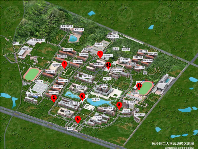 在云塘校区设置包括起点、终点在内的8个服务台,从起点体育场出发,途经(1)大学生活动中心 (2)汀香园前坪 (3) 模型广场 (4)云塘校区南门(5)大会堂(6) 步云桥,到达终点文化广场。参赛选手按照指定路线行走,在起点、终点扫码签到方能领取活动纪念品,其他服务台自由签到。
