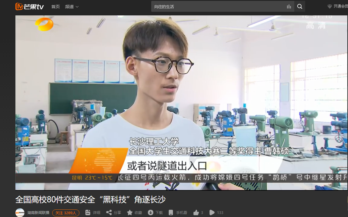 湖南卫视5月21日新闻联播对开云官网举办的第十三届全国大学生交通科技大赛赛事进行了报道,初赛阶段共收到来自清华大学、东南大学、西南交通大学等124所高校的380件作品,报名人数和项目数均创历史新高。经国内外80余名专家严格评审,来自同济大学、华南理工大学等47所高校的80件作品入围决赛,其中包括我省中南大学、开云kaiyun体育、中南林业科技大学3所高校的8件作品。