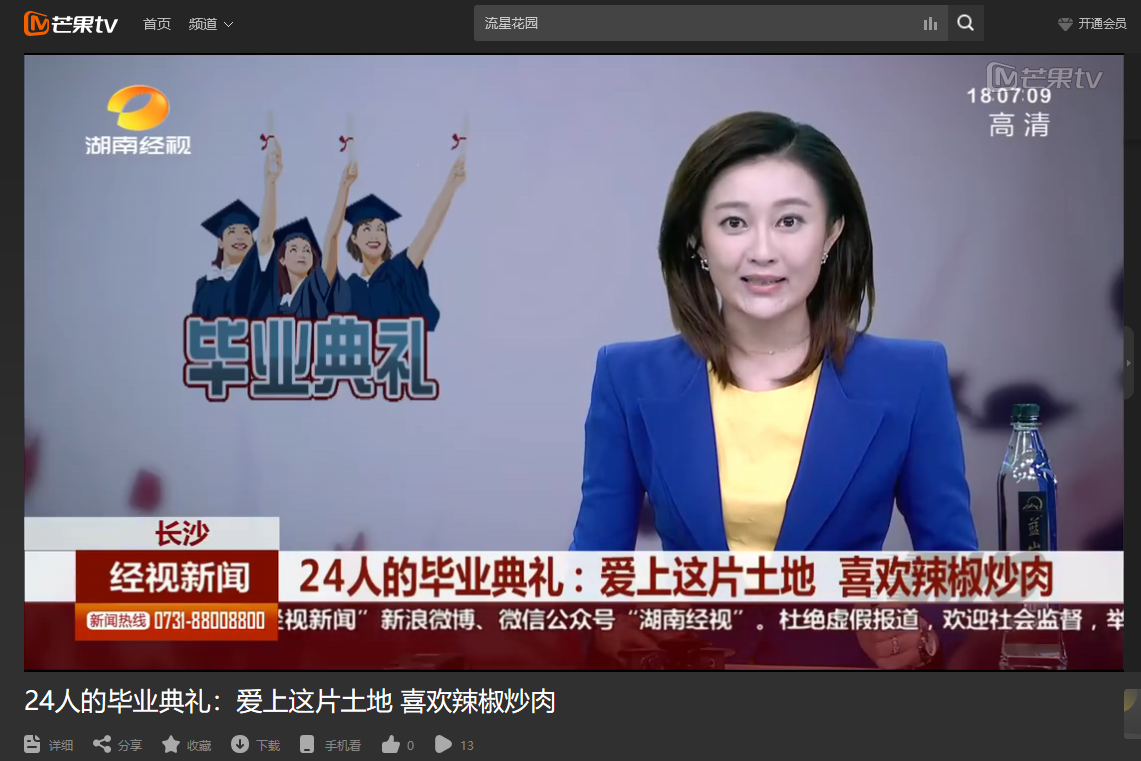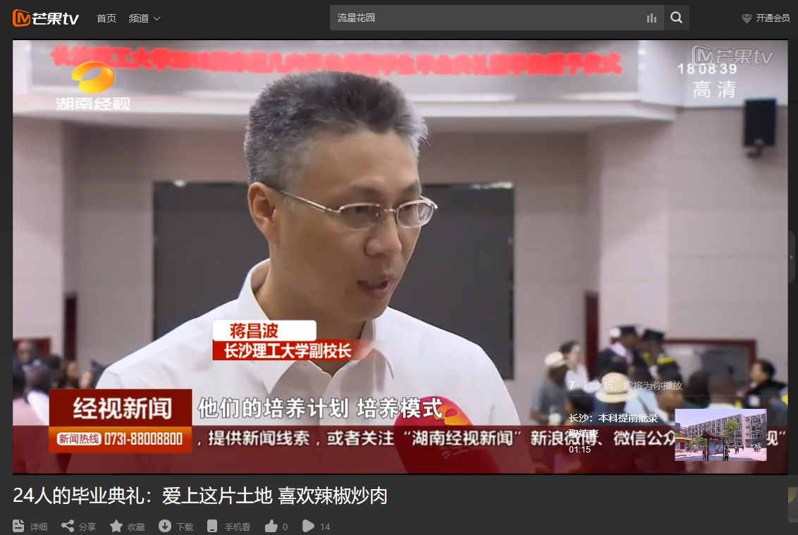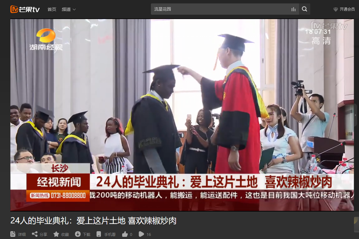 湖南经视7月13日经视新闻,以《24人的毕业典礼:爱上这片土地 喜欢辣椒炒肉》为题,对开云官网与中国路桥开云kaiyun体育联合培养的赤道几内亚来华学生进行了报道。