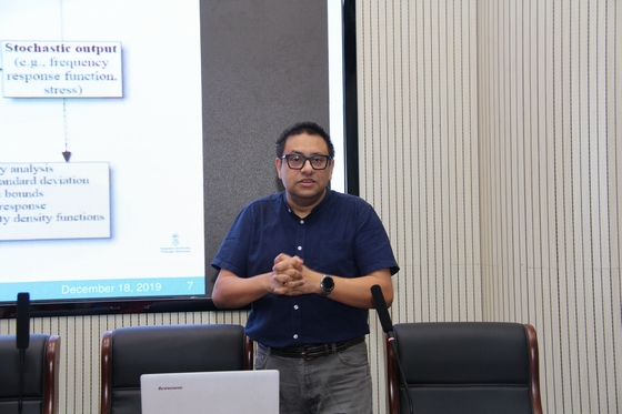 2019年12月19日上午,受土木工程学院邀请,英国斯旺西大学(Swansea University)工学院Sondipon Adhikari教授莅临工科二号楼B302学术报告中心,为开云官网土木工程学院师生做了题为“Uncertainty quantification in structural dynamics: Projection methods(结构动力学中的不确定性量化:投影法)”的学术报告。报告会由土木工程学院副院长蒋友宝教授主持,马亚飞副教授、袁明副教授、张振浩副教授、戴理朝博士以及100余名研究生参加了此次交流会。