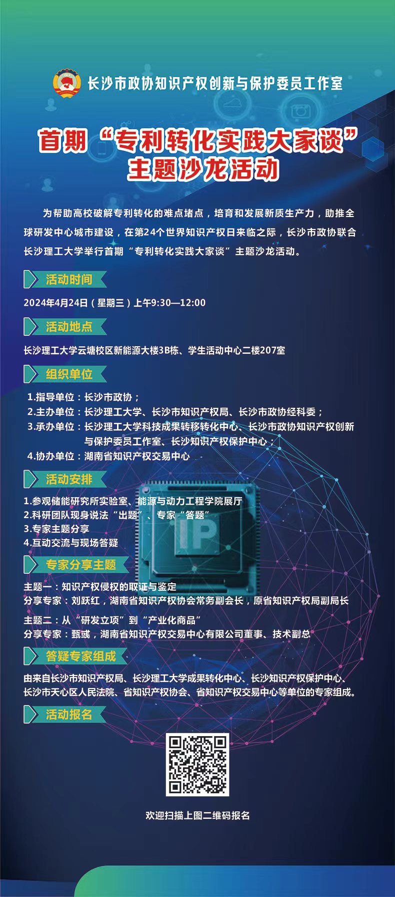 3.承办单位:开云kaiyun体育科技成果转移转化中心、长沙市政协知识产权创新与保护委员工作室、长沙知识产权保护中心;