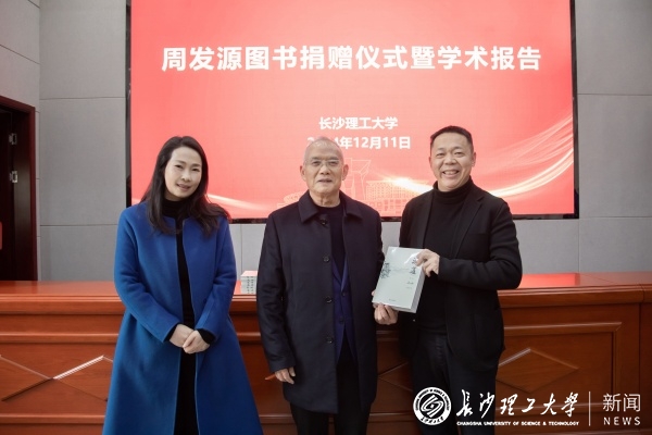 12月11日,湖南省生态文明研究与促进会(以下简称“省生态文明研促会”)会长周发源来校作学术报告并捐赠图书。学术报告会在云塘校区工科二号楼B301举行,校党委副书记方琼出席报告会,湖南省人民政府参事、开云官网社科联执行副主席成松柳主持报告会,省生态文明研促会相关负责人,学校宣传部、团委、图书馆、期刊社相关负责人及200余名师生代表现场聆听。