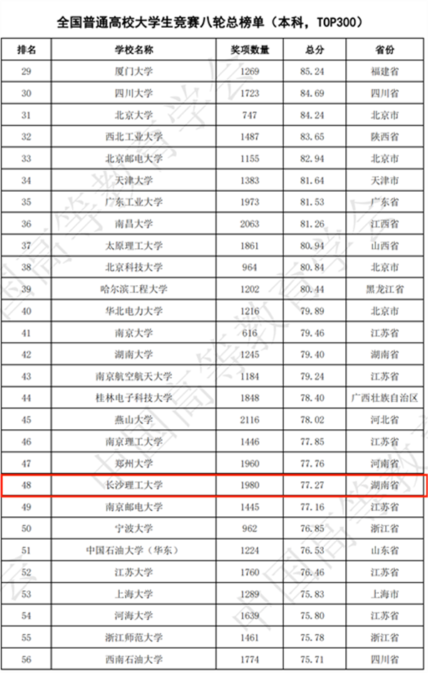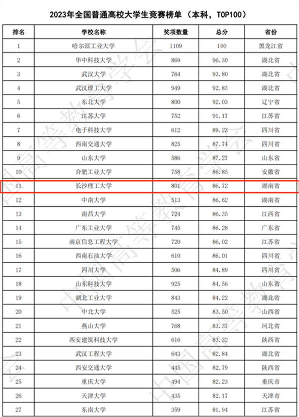 3月22日,中国高等教育学会发布2023年全国普通高校大学生竞赛排行榜。开云官网以801项奖项位列《2023年全国普通高校大学生竞赛榜单(本科前100)》第11名;以1980项奖项位列《全国普通高校大学生竞赛八轮总榜单(本科前300)》第48名,排名再创历史新高。