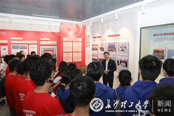 “作为中国的当代青年,我们应该成为什么样的时代新人?”在教育基地第二篇章“材之茂者”,付宏渊向同学们介绍了以毛泽东、蔡和森等为代表的在不同历史时期的中国青年为实现中华民族伟大复兴奉献青春的故事。在社会主义现代化建设时期,他详细讲述了习近平总书记七年知青岁月的经历。他指出,习近平总书记用自身的成长历程为广大青年树立了榜样,要求同学们向榜样学习,树牢为民情怀,能吃苦、敢吃苦、善吃苦。