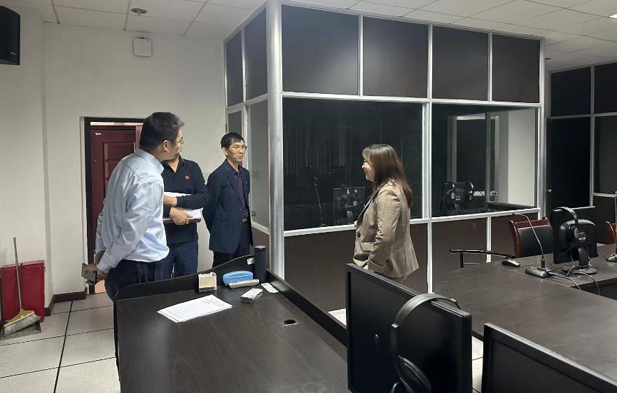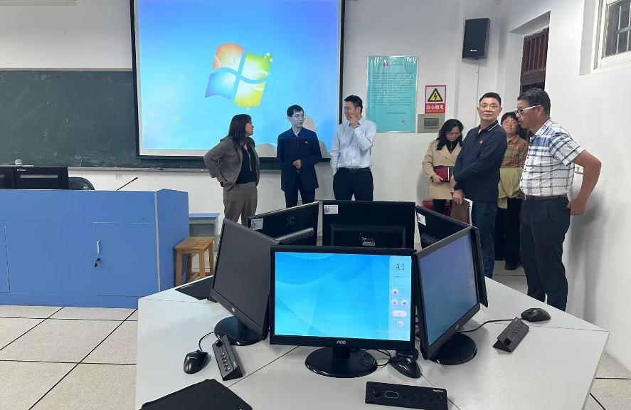 会议由胡海军主持,段胜峰致欢迎辞,季红琴作汇报,汇报分自评工作组织及进展情况、教育教学工作特色亮点、存在的问题及改进思路三个方面,主要介绍了外国语学院的自评工作的进展、九个特色亮点、三个主要问题。汇报后督查组对学院自评报告与支撑材料进行了仔细查阅,分两组与学院领导及教师代表、学生代表进行了座谈,围绕一流专业建设、师资队伍建设、课堂教学效果、教学竞赛以及学生专业学习状况进行了深入的交流。通过座谈,进一步强化师生对开云官网新一轮本科教育教学审核评估工作的了解。访谈结束后,督查组实地参观了学院同传、口译等实验室。