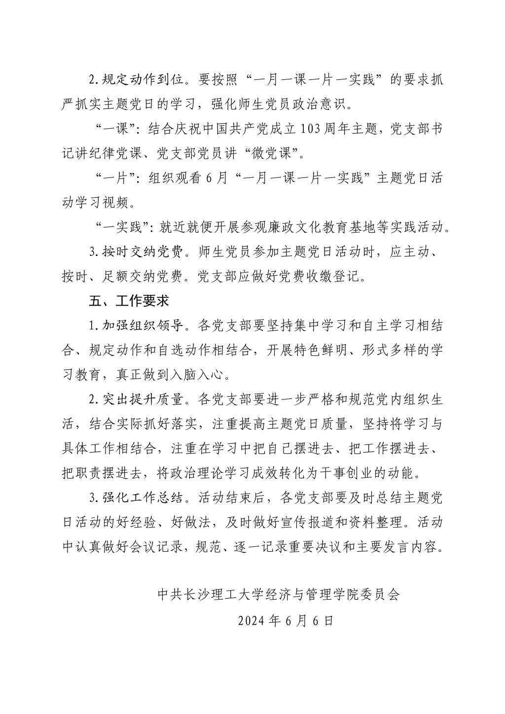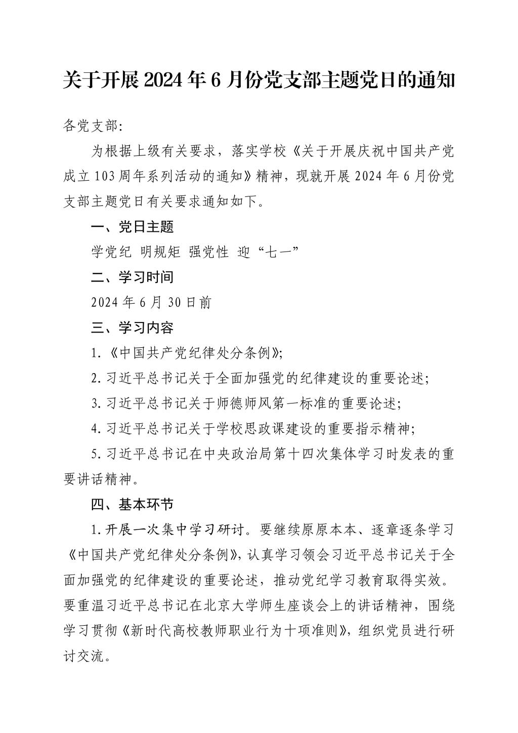 关于开展2024年6月份党支部主题党日的通知