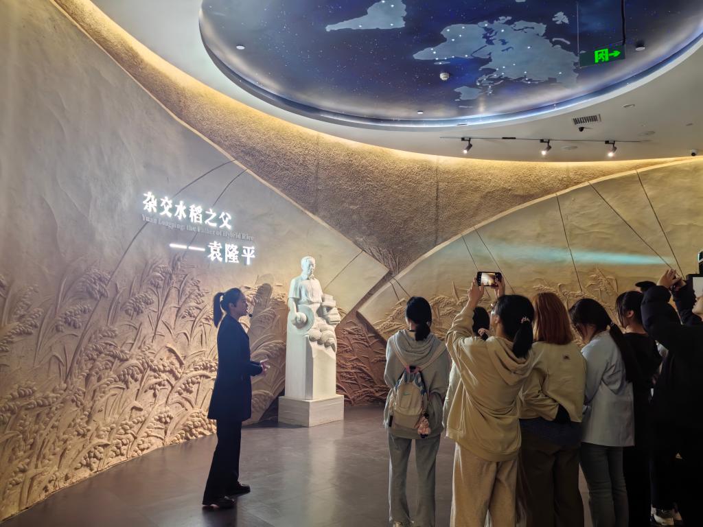 在讲解员的带领下,支部党员有序步入隆平水稻博物馆,依次走进历史厅、科技厅、袁隆平与杂交水稻厅,开启学习之旅。在历史厅,支部党员对中国水稻种植的悠久历史有了更深入地了解,认识到了古代人民在水稻种植领域展现出的卓越智慧。在科技厅,通过互动体验项目和多媒体设备,党员们直观地了解了水稻的生理属性与生长过程,深刻感受到现代科技为农业发展带来的巨大推动力。在袁隆平与杂交水稻展厅,这里陈列着袁隆平院士的手稿、照片以及他获得的各项荣誉,支部党员们认真聆听着袁隆平院士的生平事迹,真切地感受到他对农业科学的执着追求和无私奉献的精神,更为他的“禾下乘凉梦”和“杂交水稻覆盖全球梦”的伟大愿景所震撼。
