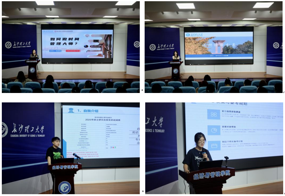 姚雁琼和张霞(分别保研至中央财经大学和湖南大学)两位同学结合各自的经历体会,从大学三年日常学习时间安排、学科竞赛参与、推免申请材料准备等方面对保研经验进行了总结分享,为学弟学妹们指明了努力方向。