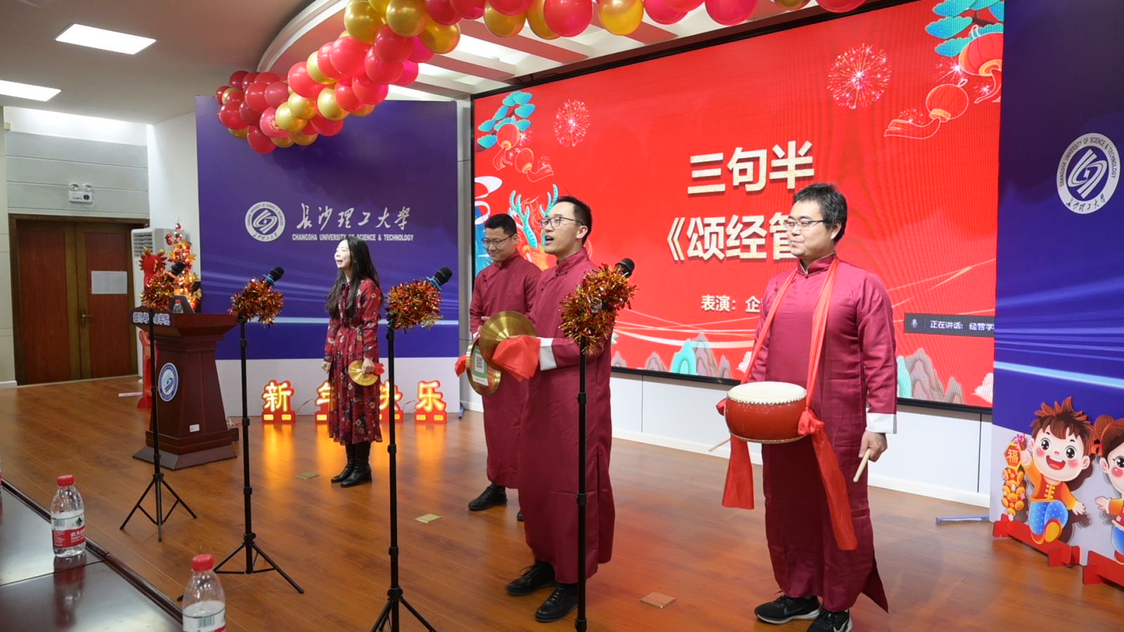 1月23日上午,经管学院在12教200室以线上线下相结合的方式举行2023年度总结表彰暨迎新春联欢会。学院全体教职工参加,会议由学工办周路路、戴逢哲主持。