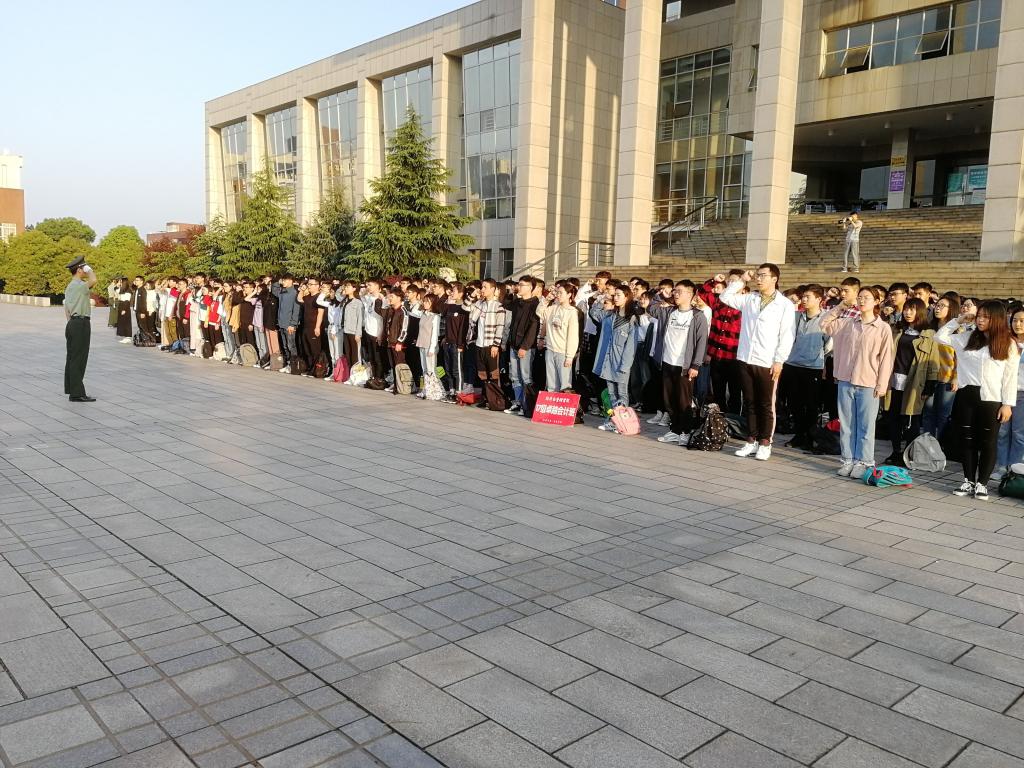 2019年4月8日早上6点55分,开云kaiyun体育经济与管理学院在图书馆前举行了庄严隆重的升旗仪式。学院党委副书记涂道勇,17级辅导员肖翠老师及全体17级学子参加升旗仪式。