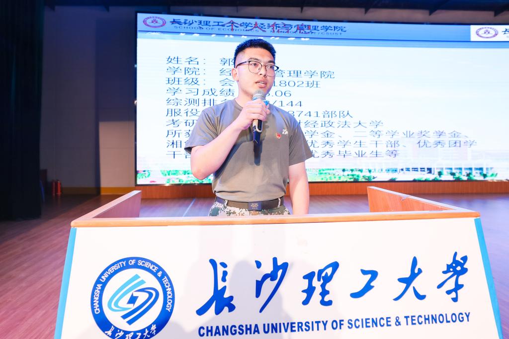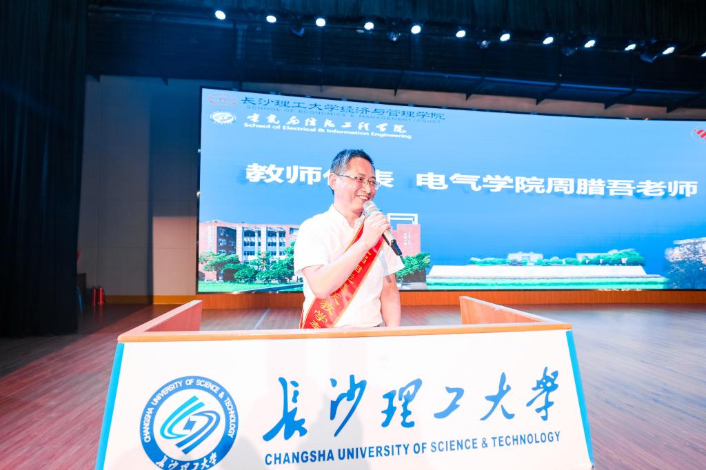获奖教师代表电气学院周腊吾老师表达了对湘能楚天集团由衷的感谢,回顾了自己30年来的教学历程,以自己的所言所行教导学生什么是学无止境。他表示,学生除了课堂的学习以外,也应多进行社会实践。学生获奖代表经管学院郭子瑜、张梁在发言中讲述了自己参军的经历与分别考研进入中南财经政法大学和北京大学的经历,并表达了对党、部队、学校以及湘能楚天电力集团的感谢,并表示自己会发挥榜样作用,砥砺前行。