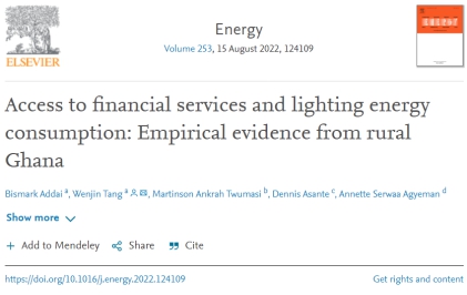 Bismark与唐文进教授合作的该论文首次通过泊松回归和IV-probit模型利用来自加纳农村的横截面数据研究了AFS对照明能源消费的影响并分析了不同性别和收入的异质性影响。研究结果表明:(1)AFS显著提升了电力、电池等清洁照明能源的消费水平;(2)无论家庭收入水平和户主的性别如何,AFS都能提升家庭清洁照明能源的消费水平;(3)人口和社会经济特征显著影响了农村家庭AFS。文章由此提出建议:政策制定者应优先扩大农村家庭获得金融服务的渠道,以提升清洁照明能源的消费水平,使农村居民摆脱不利的健康和环境条件,促进能源利用转型,实现可持续的农村发展和国家发展。文章研究结果对推进持续稳定的清洁能源消费具有重要的启示意义和参考价值。