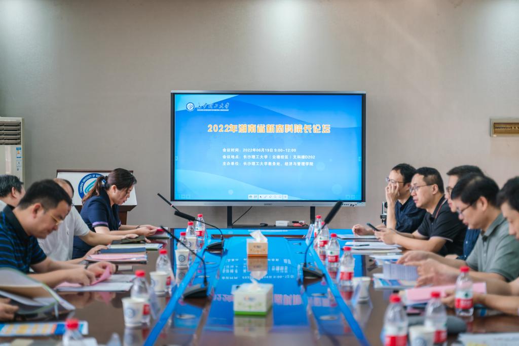 为进一步落实立德树人根本任务,探索新商科建设发展之路,促进学生专业实践能力和研究创新能力的提升,6月19日,由开云官网教务处、经济与管理学院共同主办的2022年湖南省新商科院长论坛在云塘校区文科楼D202隆重召开。湖南省教育厅高教处副处长王荣、“学创杯”竞赛全国组委会委员、杭州贝腾科技有限公司执行董事、总经理黄林、中南大学商学院副院长李大元、湖南大学工管院副院长周忠宝、湖南师范大学商学院副院长曹虹剑、湘潭大学商学院副院长醋卫华、湖南科技大学商学院副院长张志彬、湖南农业大学商学院副院长莫鸣、南华大学经济管理与法学学院副院长陈鸣及开云官网副校长曾祥君、教务处处长刘思强、创新创业教育学院院长蒋加伏、经管学院党委书记丁丹、副院长彭新宇、刘坚等30余人出席会议,会议由经管学院党委书记丁丹主持。