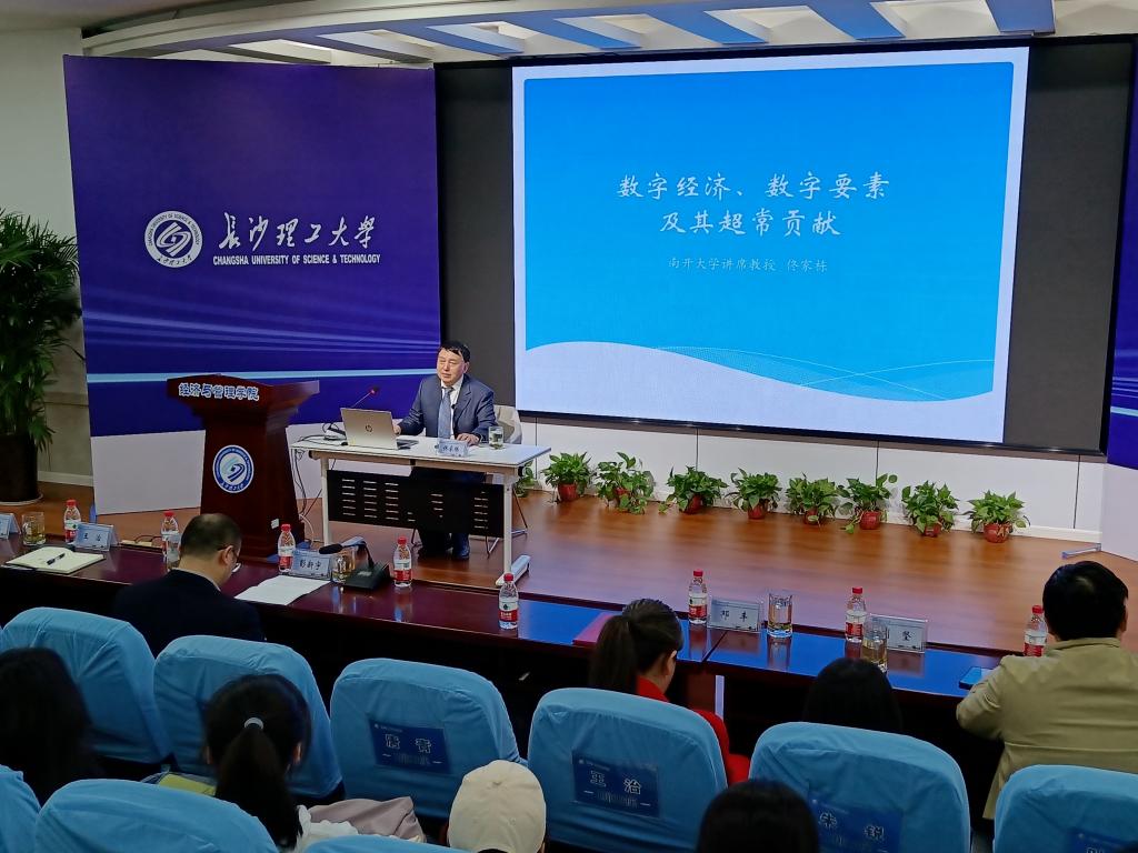 3月7日上午,南开大学讲席教授、博士生导师佟家栋受邀为经管学院经济学专业前沿系列名师专题课开讲,报告主题为“数字经济、数字要素及其超常贡献”。报告会由经管学院副院长(主持工作)彭新宇教授主持,校内师生200余人参加了此次讲座。