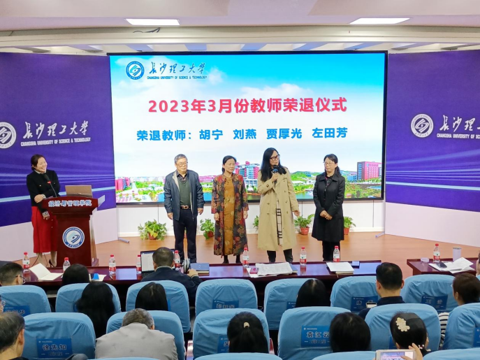 仪式以一段由学院工会精心准备的视频拉开序幕,短片回顾了4位荣退教师从青春芳华到临近退休在学院工作的难忘瞬间。他们爱岗敬业,潜心育人,为学院事业高质量发展奉献了最美好的年华。学院工会同时为荣退教师送上精心准备的蛋糕和礼物,共同为他们庆祝这一重要时刻,整个会场洋溢着幸福祥和的气氛。毕业生代表和在校生代表为4位荣退教师献上鲜花,感恩老师对自己的辛勤付出和悉心教导,并送上自己对老师美好的祝福。