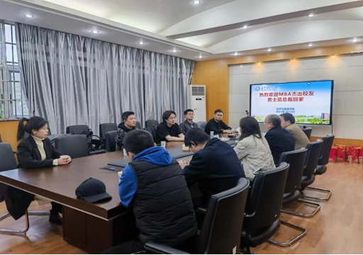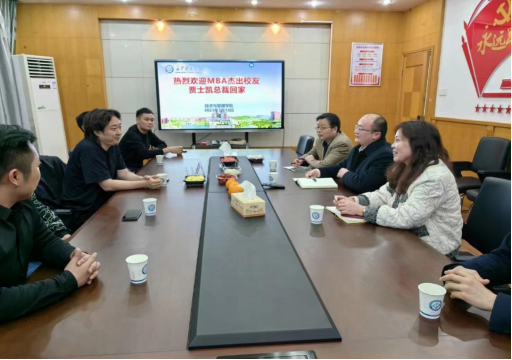 3月18日,开云kaiyun体育MBA杰出校友、北京悦凯影视有限公司总裁贾士凯莅临金盆岭校区,经管学院党委书记丁丹、副院长(主持工作)彭新宇、校友中心办公室主任王锦文以及往届MBA校友10余人在金盆岭校区办公大楼307共叙情谊、共谈发展。