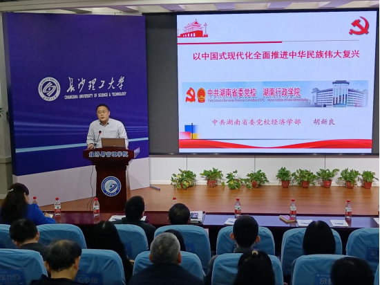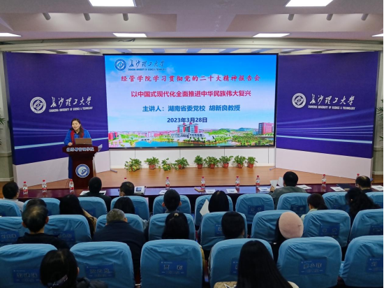 为深入学习贯彻党的二十大精神,3月28日,经管学院党委邀请湖南省委党校经济学教研部主任胡新良教授为学院全体教师讲授题为“以中国式现代化全面推进中华民族伟大复兴”的专题报告。报告会由院党委书记丁丹主持,全院170余名教师出席。