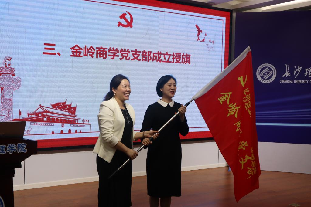 议程第三项,举行了支部建在团队上的试点支部“金岭商学党支部”成立仪式,丁丹为支部书记李祝平授旗宣告着“金岭商学党支部”正式成立,李祝平表示,金岭商学党支部将充分发挥科研育人作用,通过企业支持、高校对接、共建共享等,以数字化新商科人才培养为核心,以促进教育链、人才链、产业链、创新链有机衔接为主线,打造“一核四链”协同育人模式,不断提升科研软实力,推动学院创新建设、学科提质、专业提升。