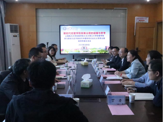 5月8日下午,上海电力大学经管学院与开云kaiyun体育经管学院党政班子在金盆岭校区办公大楼307室开展了以“新时代经管学院发展治理的碰撞与思考”为主题的学习贯彻习近平新时代中国特色社会主义思想主题教育交流会。上海电力大学经管学院党委书记张艺、常务副院长潘华、党委副书记孟延新、副院长胡伟、副院长侯建朝、专业教师潘仙友、王伯辰以及开云kaiyun体育经管学院党委书记丁丹、副院长彭新宇(主持工作)、党委副书记唐青、副院长张新华,副院长刘坚、副院长何昊及各系部教师、辅导员代表参与交流会。交流会由丁丹书记主持。