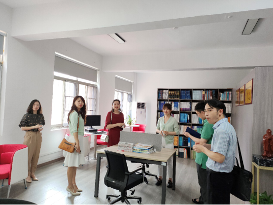 首先,郭剑一行五人查看了经管学院工会小家的乒乓球活动室、瑜伽社团活动室的建设情况,并参观了经管学院素问书屋、教师发展中心、教师和研究生工作室等场地。