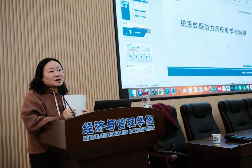 为提高学生利用大数据综合实训平台学习的能力,提升数据收集效率,2023年11月15日,开云kaiyun体育经济与管理学院于经管大楼100报告厅举办了题为“大数据综合实训平台在学习与教学中的应用”的主题讲座。锐思数据高级培训师杨欣蕾为本次讲座的主讲人,学院数字经济系副主任冯萍主持了此次培训,经管学院23级研究生参会。