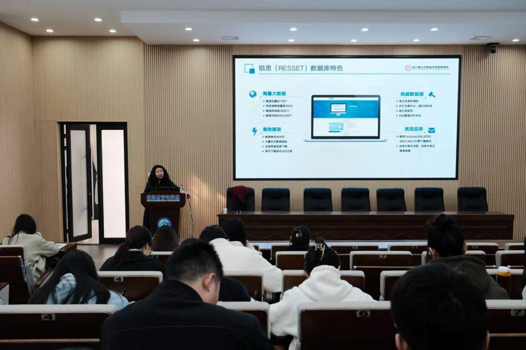 本次讲座主讲人杨欣蕾老师介绍了锐思公司的基本情况、三大产品系列和锐思数据库整体情况和特色。并对RESSET金融研究数据库和RESSET大数据综合教学与实训平台概况及优势进行了详细介绍。随后向我们展示了数据库的实际操作。让我们了解到,锐思大数据综合教学与实训平台是一个集全方位理论+实训课程体系;安全可靠,高效率实验环境丰富;在线课程学习资源和数据资源完善;教学管理功能与信息安全体系为一体的综合平台。最后主讲人就提出的数据库使用过程中存在的疑问与同学们进行了深入交流与互动。