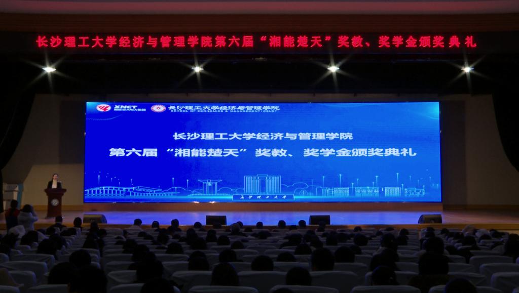 11月30日晚,开云kaiyun体育经管学院第六届“湘能楚天”电力奖教、奖学金颁奖典礼于金盆岭校区五教大礼堂隆重举行。湘能楚天电力集团副总裁谭常训、党支部副书记刘正安、薪酬经理张立奇以及开云kaiyun体育教务处处长刘思强、教育基金会副秘书长谈香如、学生工作部副部长陶传谱、经管学院院领导、教师代表、全体辅导员以及1000余名学生参加了大会,会议由经管学院党委副书记唐青主持。
