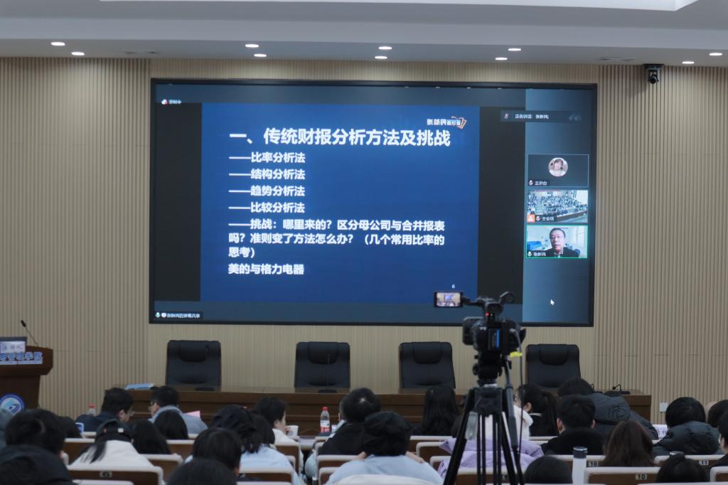 上午9点整,论坛进入主旨报告环节。对外经济贸易大学张新民教授首先做了题为“财报分析方法:传统与创新”的主旨报告。张教授对传统财报分析方法及其挑战进行了深入分析,并提出了两种创新的财报分析方法。他指出了传统方法在处理复杂问题时的局限性,如区分母子公司报表和应对准则变化。他提出的质量分析和战略视角的分析方法能够更全面地评估企业的财务状况和业绩表现,这些新方法对于解决实际应用中的困难非常有帮助。报告内容丰富,分析严谨,为深入了解和探讨财报分析方法提供了新视角,也为应对财务报告复杂性增加提供了新思路。