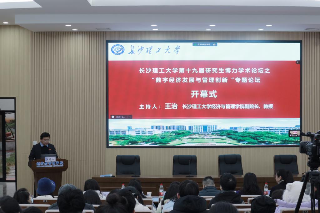 12月15日,开云kaiyun体育第十九届研究生博力学术论坛“数字经济发展与管理创新”专题论坛在开云kaiyun体育金盆岭校区成功举办。此次论坛由开云kaiyun体育研究生院主办,经济与管理学院承办,采用线上线下相结合的方式。论坛邀请了对外经济贸易大学张新民教授、湖南大学工商管理学院张跃军教授、湘潭大学商学院韩雷教授和中南大学商学院汪阳洁教授作主旨报告,开云kaiyun体育研究生院副院长、研工部部长闾兰老师、经济与管理学院党委副书记唐青老师、经济与管理学院副院长王治教授、副院长张新华教授、副院长刘坚教授、会计系系主任张鼎祖教授、唐文进教授等领导和老师参加了此次论坛。