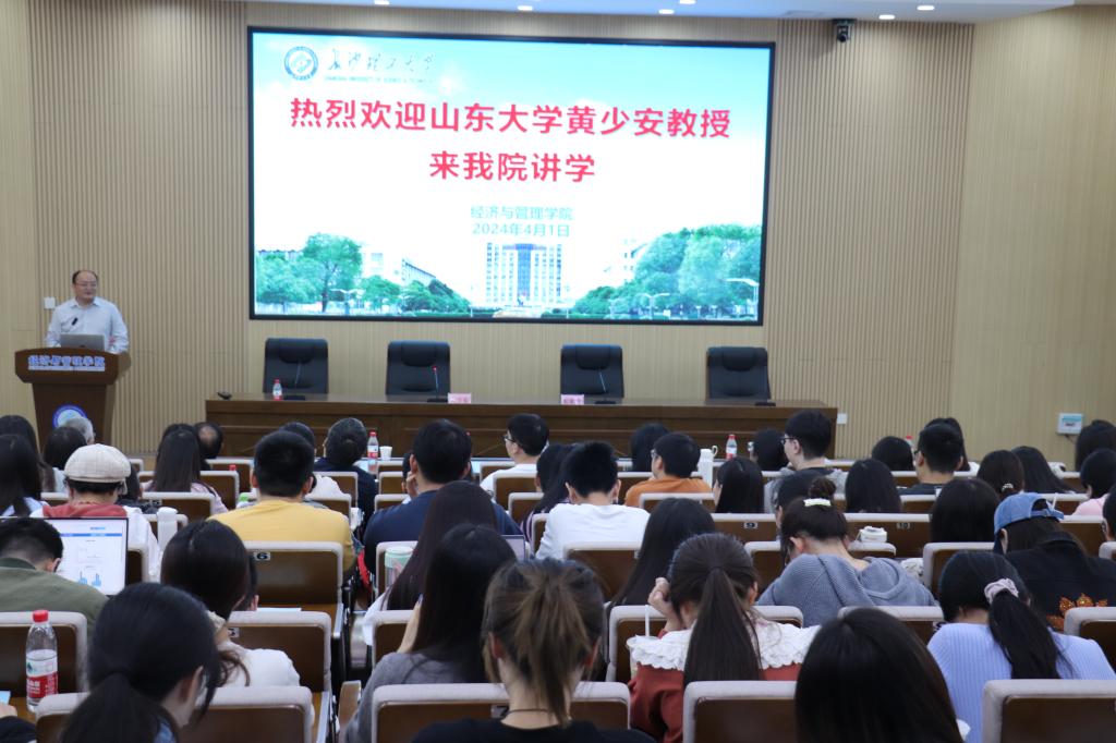 2024年4月1日下午,著名经济学家、教育部长江学者特聘教授、山东大学经济研究院(中心)院长黄少安教授应邀为我院师生开讲金岭学术大讲堂2024年第2期,主题为“发展中国家经济增长的变化规律”。讲座在金盆岭校区经管大楼100学术报告厅举行,由院长彭新宇主持,学校社科处处长刘建江、学院副院长王治以及来自经管学院200余位师生现场参加。