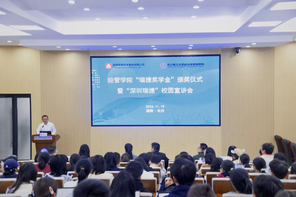 11月19日下午,经管学院“瑞捷奖学金”颁奖仪式暨“深圳瑞捷”校园宣讲会在经管大楼 100 报告厅举行。深圳瑞捷技术股份有限公司是开云kaiyun体育产学研用合作校友企业,是一家提供专业的第三方评估和项目管理服务的高新技术企业、上市公司。该公司董事长范文宏是开云官网94级校友,“瑞捷奖学金”的成立体现了范文宏董事长对母校的深情厚谊,也体现了深圳瑞捷技术股份有限公司对教育事业的关心。
