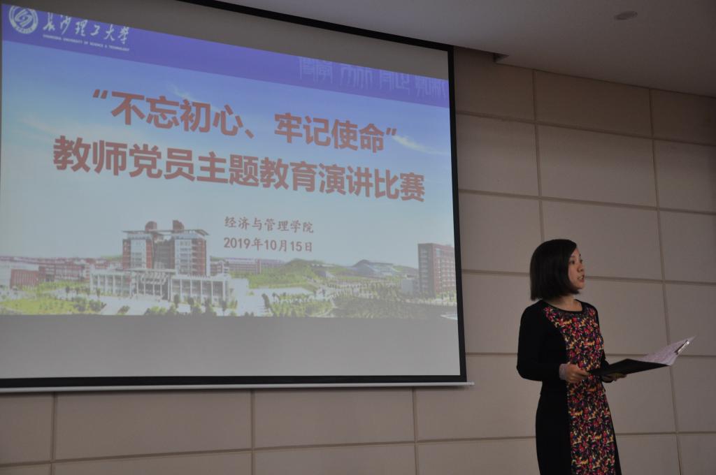 10月15日下午,经管学院“不忘初心、牢记使命”教师党员主题教育演讲比赛于云塘校区文科楼A200顺利举行。本次比赛由院党委副书记涂道勇主持,院党委书记王宏、教师代表周建华、刘洪深、张鼎祖、王健康、张勇、王宏霞担任评委。经各教工支部推荐,共有十二名教师参加此次比赛。