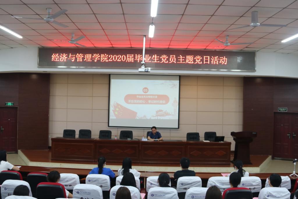 2020年6月18日下午,经济与管理学院毕业生党员主题党日活动于文科楼A200举行,经管学院党委书记王宏、党委副书记唐青、学工办全体辅导员、16级全体毕业生党员出席本次会议,同时其它未返校年级党员通过线上腾讯会议参与活动。