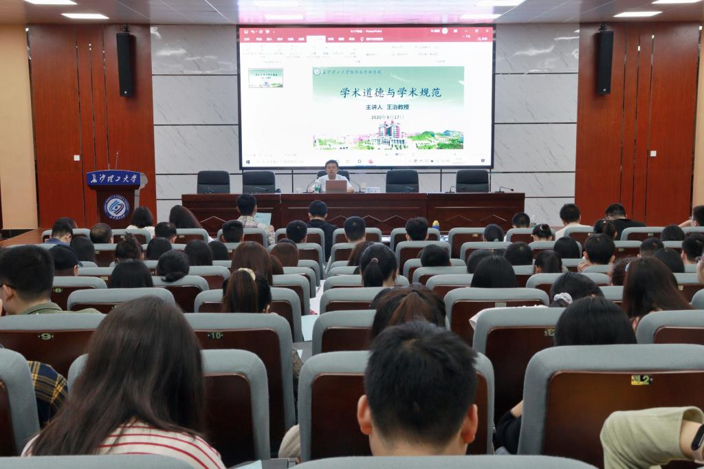 为了创设纯洁的学术环境,引导研究生加强科研道德与学术规范的自我教育,2020年9月17日9:30,经管学院副院长王治教授在金盆岭校区四教报告厅以“有情怀、守操守、敢担当——谈新时代研究生的科学精神”为题做了一场专题讲座。此次讲座由研究生辅导员周路路老师主持,我院会计、工商管理、金融、应用经济学等专业220余名2020级研究生参加。