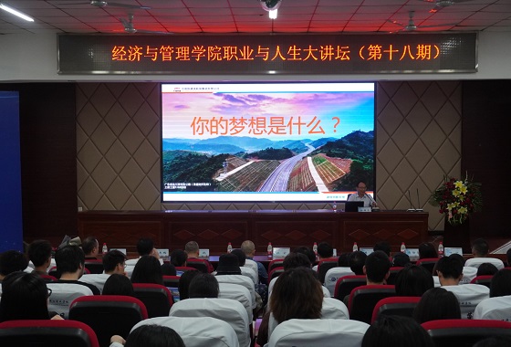 9月21日下午2:30,经管学院第18期职业与人生大讲坛在云塘校区文科楼A200举行。此次邀请的主讲嘉宾为中国铁建港航局总经理、党委副书记金国亮,经管学院2017级、2018级部分专业学生参加了讲座,讲座由经管学院党委书记王宏主持。讲座的主题为“既当追梦人,又当圆梦者”。