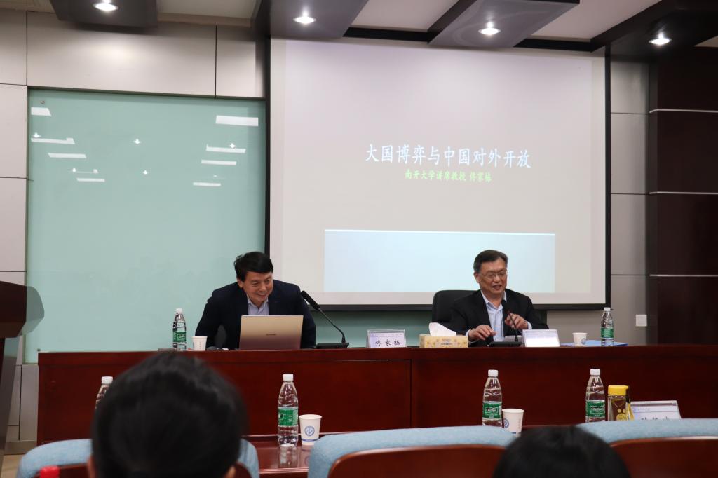2020年11月7日下午,经管学院有幸邀请到南开大学原副校长、博士生导师佟家栋教授在金盆岭校区7教212做了题为“大国博弈与中国对外开放”的学术讲座。开云官网副校长谈传生、经管学院院长陈银娥等领导老师及100余名硕士研究生、本科生参与,本次讲座由谈传生副校长主持。