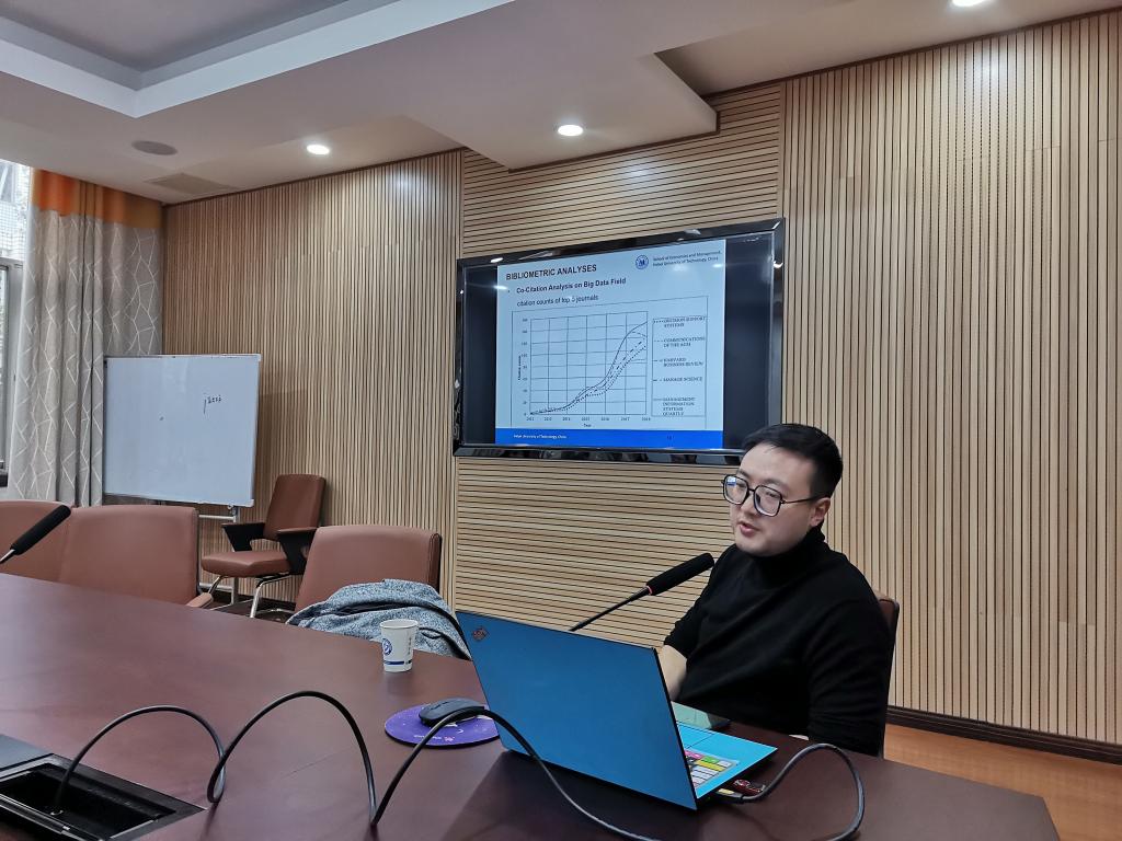 本次讲座,张教授就“大数据知识图谱”主题,详细介绍了如何利用CiteSpace文献分析工具,预测文献演化及发展过程,并将其来预测热点研究方法。通过本次学术研讨会,参会的师生对于CiteSpace文献分析软件的使用,以及如何将其用于判断有可能的研究方向有了初步认识。参加本次讲座的有我院人力资源管理方向的硕博研究生,以及来自湘潭大学、湖南工商大学、湖南科技大学、湖南第一师范学院的兄弟院校的学术同行多人。(图文/李铁宁 审/王宏)