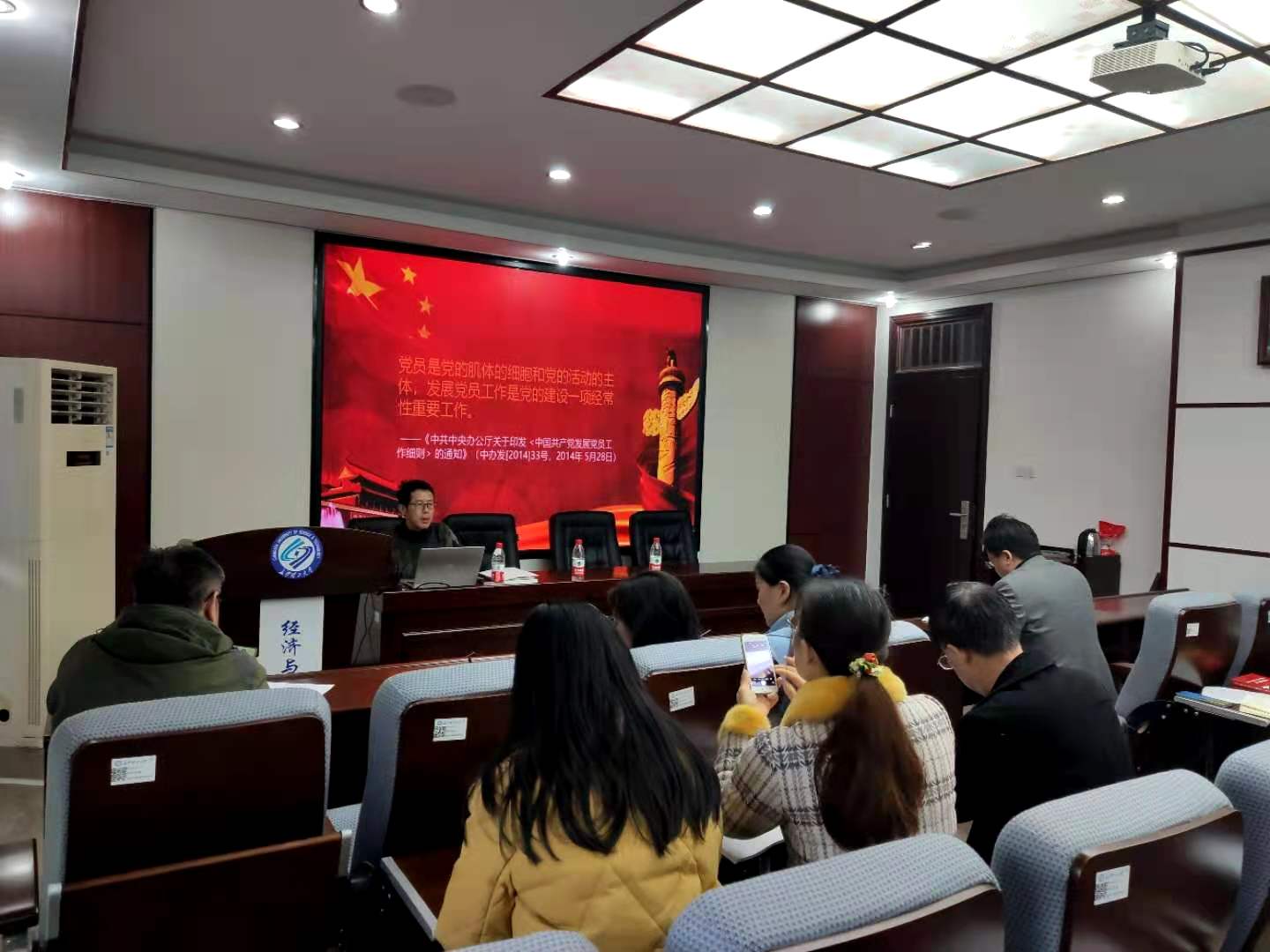 为提升我院教师党支部全体支部委员的能力素质和业务水平,规范党员发展入党流程,进一步促进院党建工作高质量发展,12月1日下午,我院在文科楼E501举办党员发展入党流程和基层党建实务培训会。院党委书记王宏、院专职组织员丁力作培训报告,教师党支部全体支部委员参加学习,院党委书记王宏主持会议。