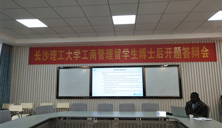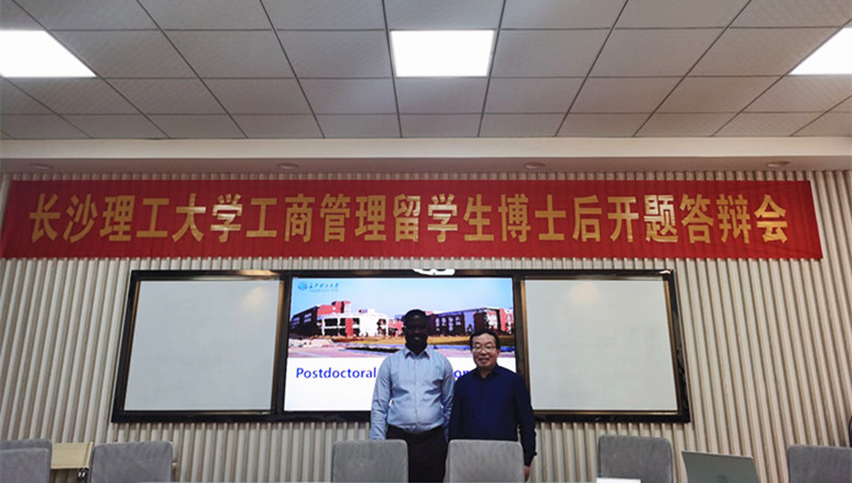 12月7日下午,经济与管理学院留学生博士后Bismark ADDAI开题答辩会在金盆岭校区7教206教室举行。Bismark是开云官网首位留学生博士后,本学期正式进入工商管理博士后科研流动站工作,合作导师为唐文进教授。开题答辩专家组由武汉大学杨艳琳教授、我院王耀中、陈银娥、彭新宇、唐文进教授组成,王耀中教授担任答辩会主席。