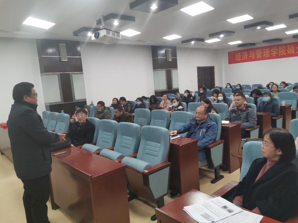 2021年1月25日下午,财会系在金盆岭校区7-212会议室召开了2020年年度总结工作会。会议由财会系党支部书记刘天雄主持,财会系全体教师参加,经济与管理学院副院长谢朝华、彭新宇和王治应邀出席了本次会议。