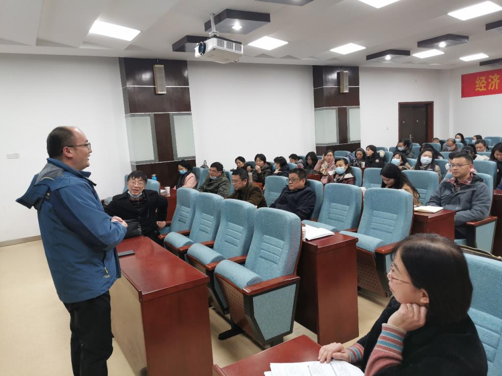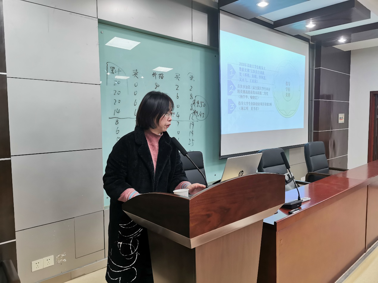 接着,财会系系主任袁江云通过PPT图文并茂地报告了2020年度财会系在教学建设、教研教改和科研,以及综合管理等三个方面所完成的工作和取得的成果,并提出了2021年度工作重点和建议。