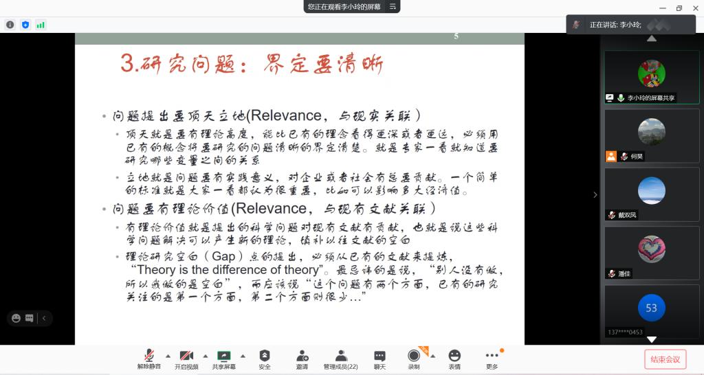 为了推动国家基金申报工作,2021年2月2日下午,企业管理系邀请了武汉大学崔楠教授、重庆大学李小玲教授和华中科技大学周元元副教授,通过腾讯会议的形式,开展了国家自然科学基金的申报指导会。会议由企业管理系系主任何昊主持,企业管理系及经管学院其他教学系23名老师参加了此次申报指导会。