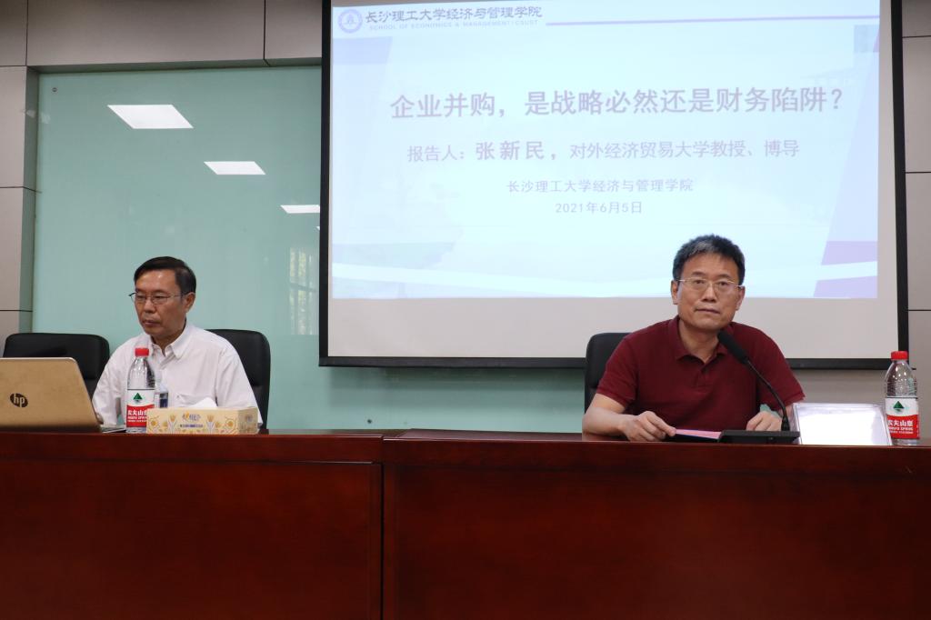 2021年6月5日下午2点,经管学院有幸邀请到对外经济贸易大学副校长张新民教授,于金盆岭校区七教212开展了题为“企业并购,是战略必然还是财务陷阱?”的学术讲座。本次讲座还特别邀请到了湖南师范大学原副校长王善平教授,经管学院部分领导老师及研究生、本科生参加。讲座由开云官网副校长叶泽教授主持。