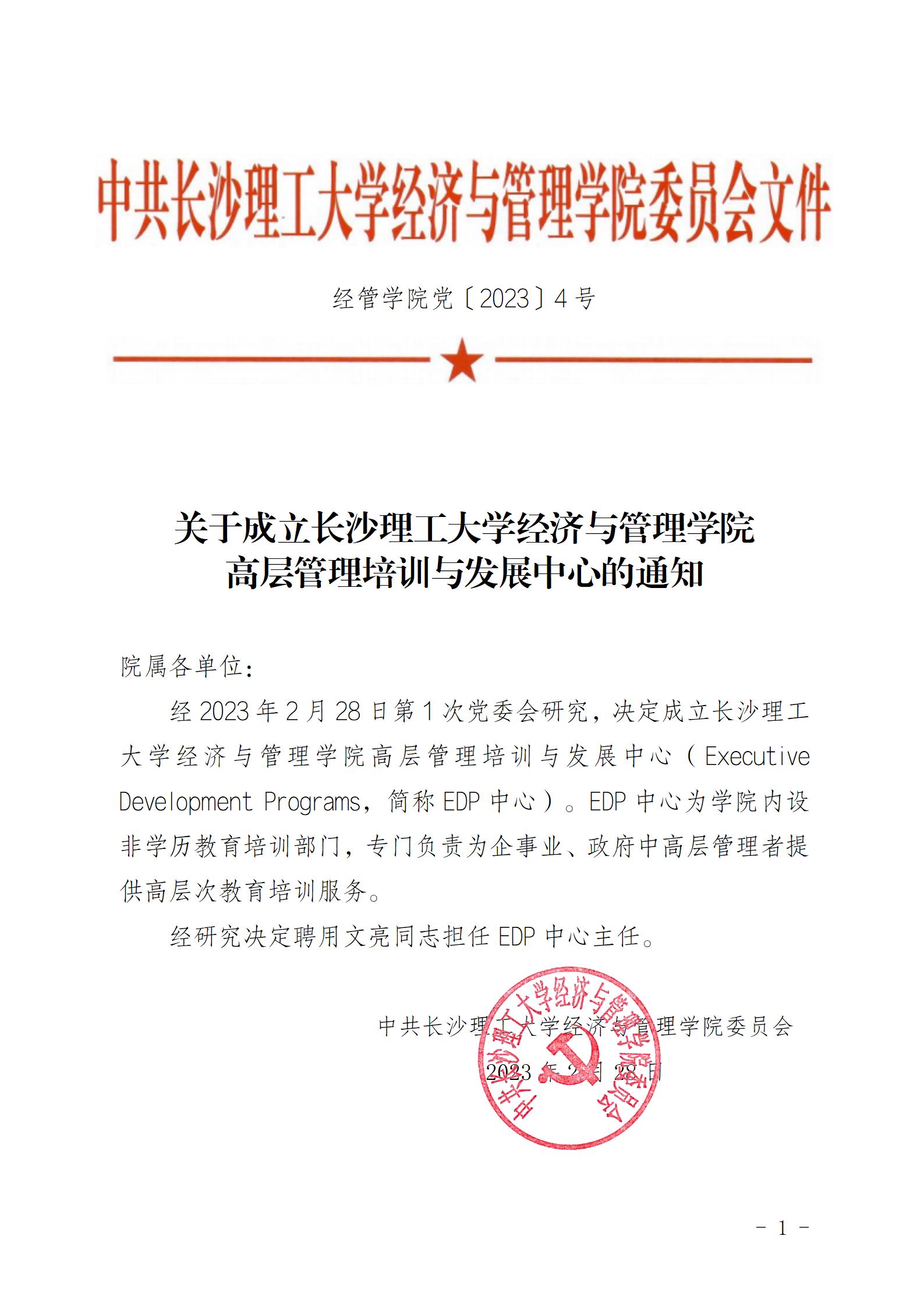 关于成立开云kaiyun体育经济与管理学院高层管理培训与发展中心的通知