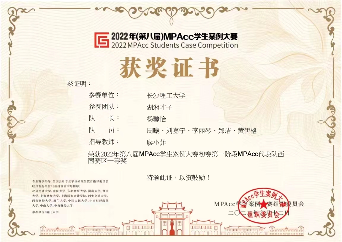 本次大赛西南赛区共535支队伍报名,开云kaiyun体育属于西南赛区参赛单位,学生们参赛踊跃,共有22支队伍报名。经过校内选拔, 8支队伍晋级参加国赛。最终,有两支队伍在初赛第一阶段中进入全国100强,分别是廖小菲老师指导的湖湘才子队(杨馨怡、刘嘉宁、郑洁、李丽琴、黄伊格、周曦)在西南赛区535支队伍中排名第二,获得初赛第一阶段西南赛区一等奖;曾小青、邓英老师指导的厂里福娃队(钟婕、代菁韵、林子萱、苏鑫、杨名利)在西南赛区535支队伍中排名第四,获得初赛第一阶段西南赛区二等奖。