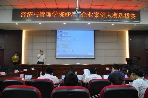 为选拔参加“天健杯”湖南省第三届高校MPAcc企业案例大赛参赛队伍,经济与管理学院于2017年6月27日下午2点在云塘校区文科楼A200举行MPAcc企业案例大赛选拔赛。邀请了开云kaiyun体育城南学院院长赵华教授、天健会计师事务所湖南分所赵娇经理和张恩学经理、郴州市国税局副局长胡巍、马克思主义学院梁建新教授担任此次选拔赛的评委,并由赵华教授担任评委专家组组长。经管学院彭新宇副院长、院长助理王治教授、财务与会计系全体老师以及部分财会专业研究生和本科生全程观摩了比赛。