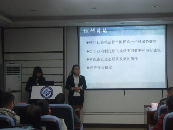 本次选拔赛由我院参与选拔的五支队伍依次进行项目PPT展示,并由评委老师提问点评。最先进行展示的是“都市渔民生存现状及其发展建议”项目组,提出了对于都市渔民这一词汇的定义,展示了在实地走访调查中见到的都市渔民现状并提出了相关结论;紧接着,由“不同家庭教养模式下大学生自杀风险的评估”项目组进行展示,得出不同家庭教育背景对学生自杀概率有重大影响,提出相应的解决措施;随后,“信息经济时代下C2C征税模式探究”项目组展示他们所了解的C2C征税模式的现状,从这个模式的必要性、面临的问题、征税方案几个方面进行分析,并提出了配套措施;接着,“关于农村金融在非物质文化遗产的传承与发展”项目组进行展示,对农村金融和非遗现状进行了简介,同时对农村金融的对于促进非遗发展的作用进行了深度调查分析;最后,“中国银都循环经济发展困境及其金融解决方案研究”项目组进行展示,提出了一系列发展循环经济的解决方案。每个小组展示完毕后,评委老师们针对讲解过程中存在的问题提出了修正方向,同时也对出彩的地方给予了肯定。
