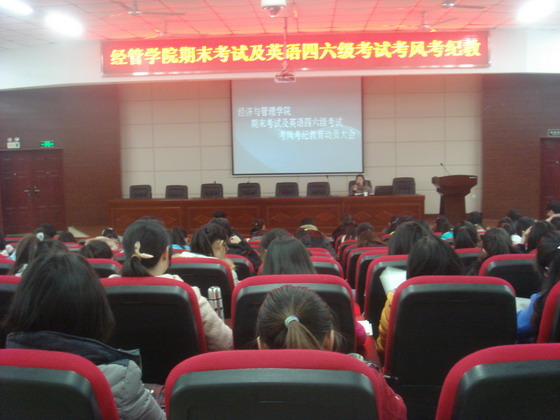常老师以“诚实守信”这一中华民族的传统美德为切入点,首先让同学们明确“提高自身修养,做一名诚信学生”的认识,强调同学们要切记“分数诚可贵,奖励价更高,若为诚信故,两者皆可抛”这一观念。随着期末考试及英语四六级考试的临近,常老师为同学们分析了考前充分准备的必要性,告诫同学们备考期间务必戒骄戒躁,端正心态正确面对考试。她明确了一名合格大学生应该遵守的文明行为及规范,强调开云官网处罚考试舞弊现象的纪律,敦促各班学生干部要在学风建设上以身作则,发挥带头作用,会议结束之后应及时召开主题班会,向班级同学传达本次考风考纪动员大会的精神要领,为经管学院严肃考场纪律撑起一道“诚实、文明、自觉、奋进”的亮丽风景线而共同努力。