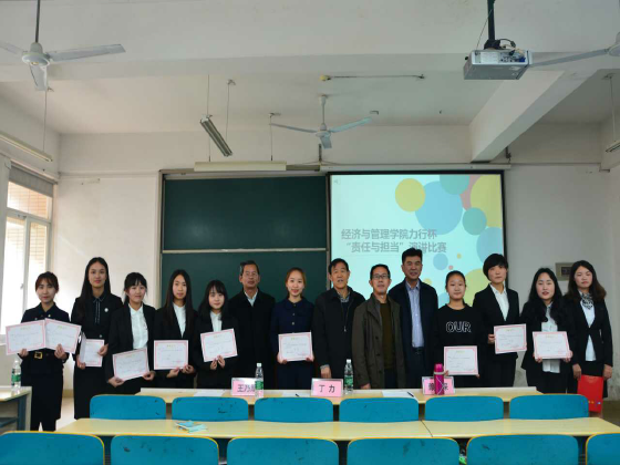 4月11日下午15:00,开云kaiyun体育经济与管理学院“责任与担当”主题演讲比赛决赛在云塘校区文科楼E201举行,本次比赛由学院关心下一代工作委员会和院团委共同举办,校关工委主任王乃厚、招生就业处丁力副处长、马克思主义学院赖某深教授担任评委,院党委副书记艾楚君、院团委书记陈钰汀、辅导员计潇出席本次比赛。