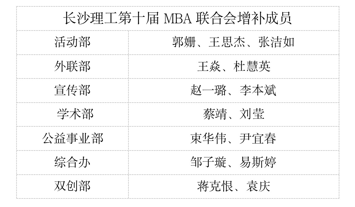 关于开云kaiyun体育MBA联合会: 开云kaiyun体育MBA联合会是一个致力于促进学术交流、提升管理水平的学生组织。通过举办各类活动,联合会为MBA学子搭建了一个展示自我的平台,培养学生的综合素质,推动MBA教育的发展。